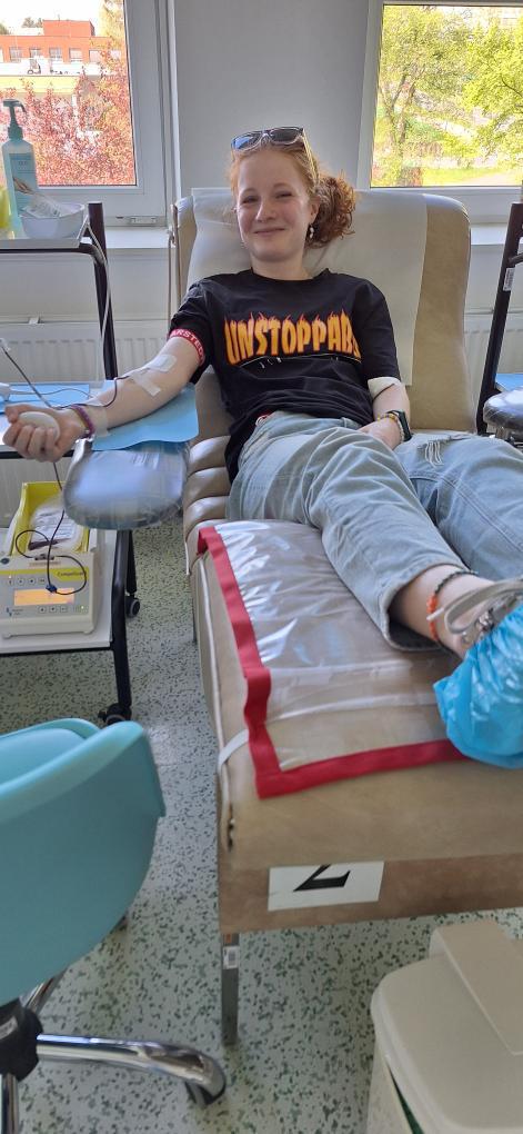 Dopoledne 23. 4. 2025 se někteří studenti oktáv a septim rozhodli udělat dobrý skutek a šli darovat krev. Z původních skoro dvaceti zbylo jen několik statečných, kteří se ve finále odběru zúčastnili. Krevní centrum naší fakultní nemocnice potřebuje měsíčně kolem 2 000 dárců, aby zvládli pojmout požadavky FNO a nemocnice Fifejdy. Jsme rádi, že jsme mohli být některými z nich, třeba naše krev někomu zachrání život!