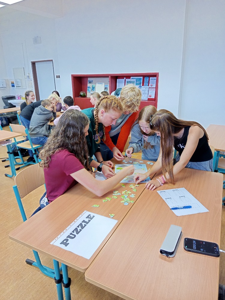 Žáci soutěžili v pětičlenných týmech, které postupně procházely 12 stanovišti s rozmanitými úkoly. Čekaly na ně kvízy, skládačky i online aktivity, které prověřily nejen znalosti jazyků, přísloví nebo idiomů, ale i povědomí o evropských státech – geografii, kultuře, vlajkách či hymnách.