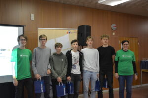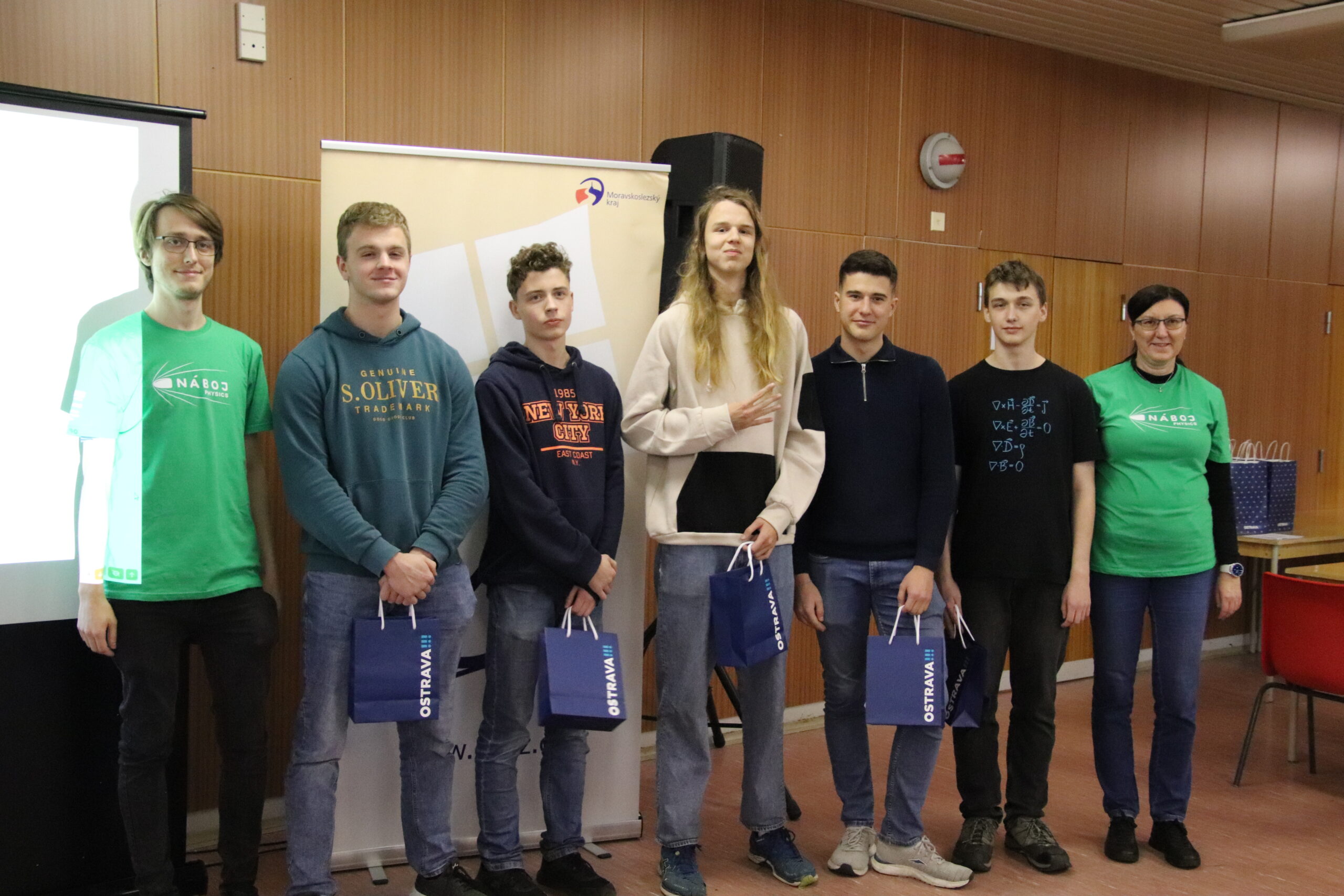 Naši školu v každé kategorii reprezentovaly dva týmy složené z žáků kvint, septim a oktáv. Nejlépe si s obtížnými úlohami poradili žáci 7. A Lada Srpová, Stela Srpová, Matěj Hošek, Ondřej Skála a Tadeáš Těhan, kteří v Ostravě získali 5. místo a v rámci českého žebříčku 18. místo.