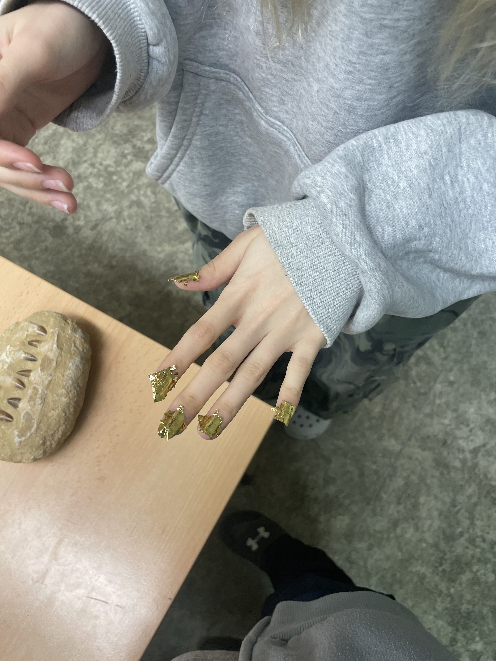 Náš lektor byl po celou dobu otevřen otázkám a diskusí se studenty. Sám jim vysekl malou poklonu, když je označil za zdravě zvídavé a živé. Myslím, že přednáška splnila naše očekávaní. Kdo chtěl, mohl si odnést spoustu nových poznatků, vědomostí a jako bonus i plátky zlata ozdobené nehty. A nám jako vyučujícím se snad podařilo vymýtit zbytečné obavy z geologie coby součásti výuky.