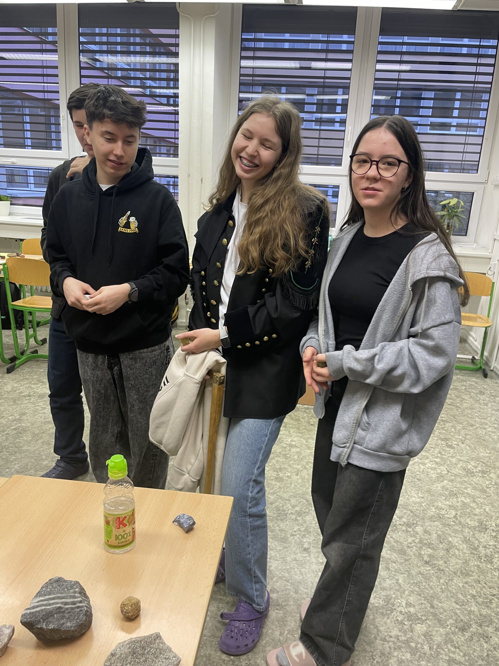 Ve dnech nedávno minulých se obě kvarty, v nichž letos probíhá výuka geologie, zúčastnily přednášky o nerostech a minerálech. S vidinou beden plných „šutrů“ a tří hodin strávených v zajetí neživé přírody se některým studentům před akcí dělalo mdlo, nicméně lektor se ukázal býti odborníkem na slovo vzatým. Nejenže studenty přivedl nenásilným způsobem k aktivitě, ale navíc v nich vyvolal i zájem dozvědět se o představených vzorcích více.