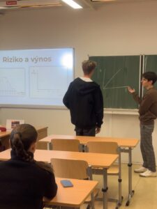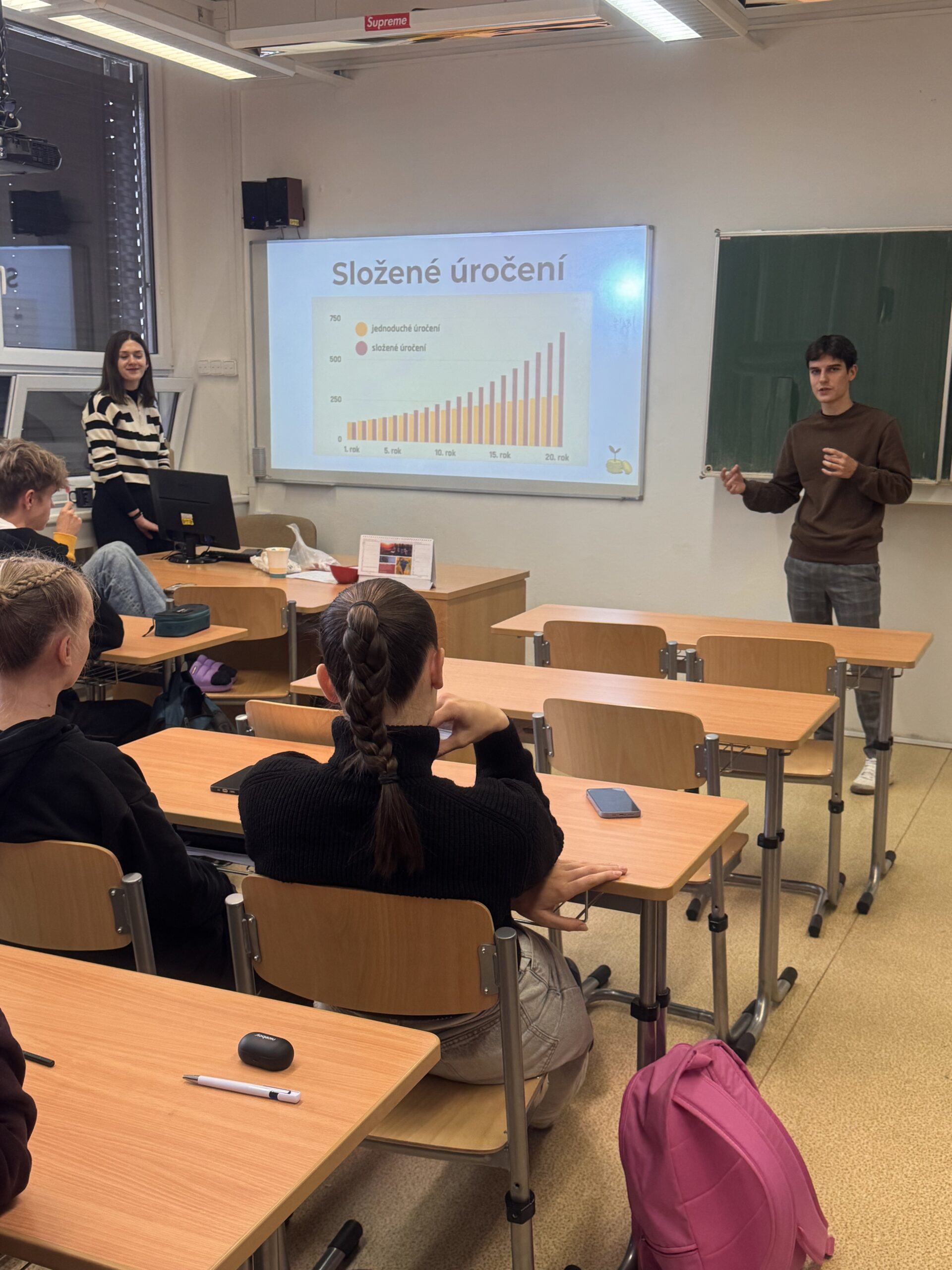 Letos už potřetí zavítali také k nám – konkrétně do septim, kde proběhly besedy na téma Finance v praxi. Žáci se během besedy věnovali otázkám osobního rozpočtu, investic, úvěrů i daní, diskutovali o brigádách, podnikání i o tom, jak se vyhnout finančním pastím. To vše v neformálním duchu, jazykem, kterému rozumí jejich generace. To potvrzují i ohlasy žáků, ze kterých vybíráme: