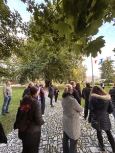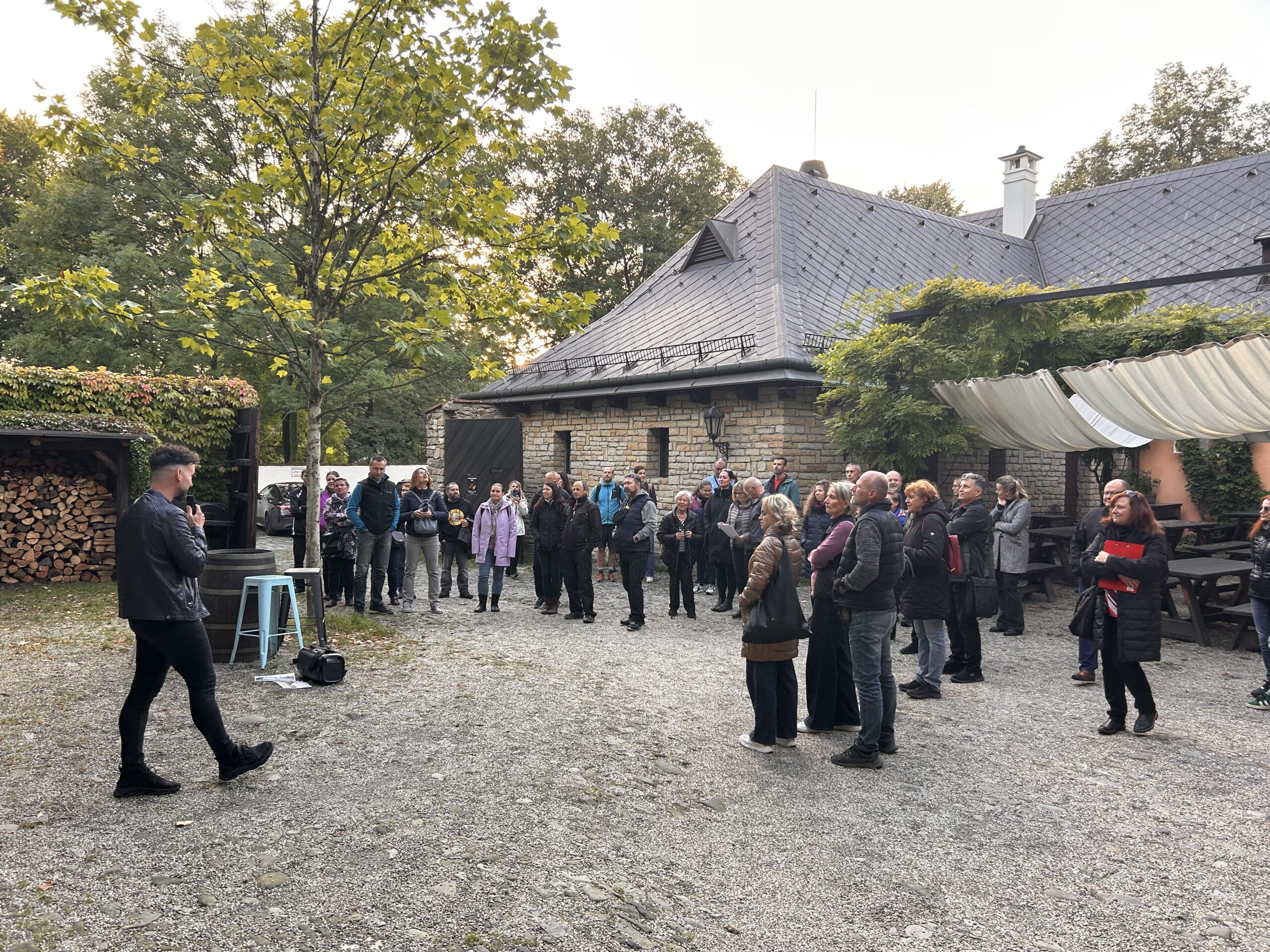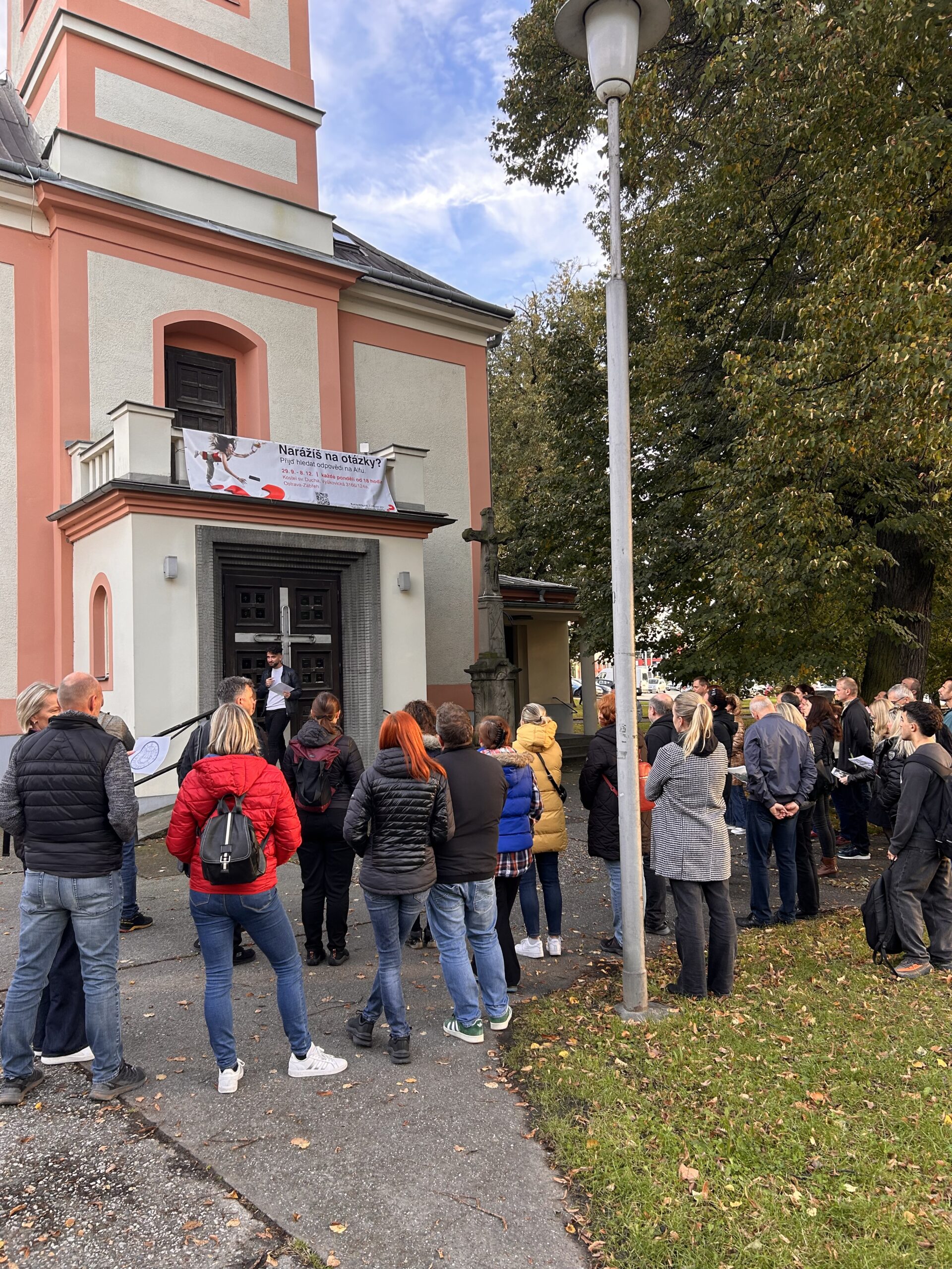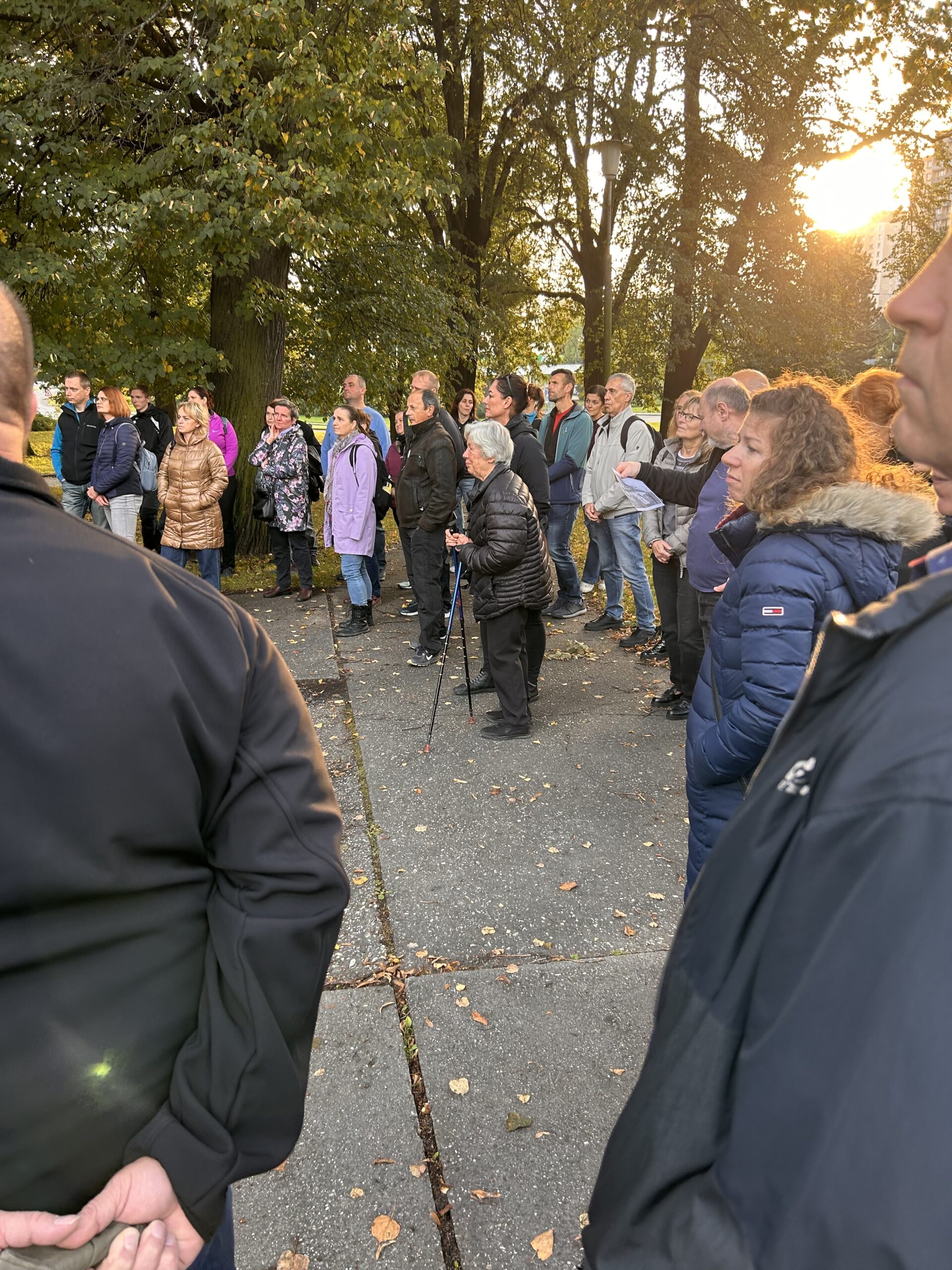 Sešli jsme se v ulici Závoří u kostela Navštívení Panny Marie, pokračovali k místnímu zámečku a skončili u tzv. bludného balvanu (zastávek bylo celkem jedenáct). Děkuji všem padesáti účastníkům, řediteli školy (realizováno ze Šablon) a v neposlední řadě panu průvodci, který byl velmi znalý, vtipný a skvěle nám zprostředkoval historii Zábřehu.