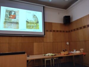 Přednáška se neomezovala pouze na teoretické poznatky – účastníci měli možnost zhlédnout historické ilustrace a dobové kuchařské knihy, které přibližovaly tehdejší gastronomii. Celý program byl zakončen drobnou degustací, během níž si studenti mohli vyzkoušet některé typické chutě minulosti. Přednáška tak poskytla nejen zajímavý vhled do dějin každodenního života, ale i příležitost zažít historii doslova na vlastní chuťové pohárky.